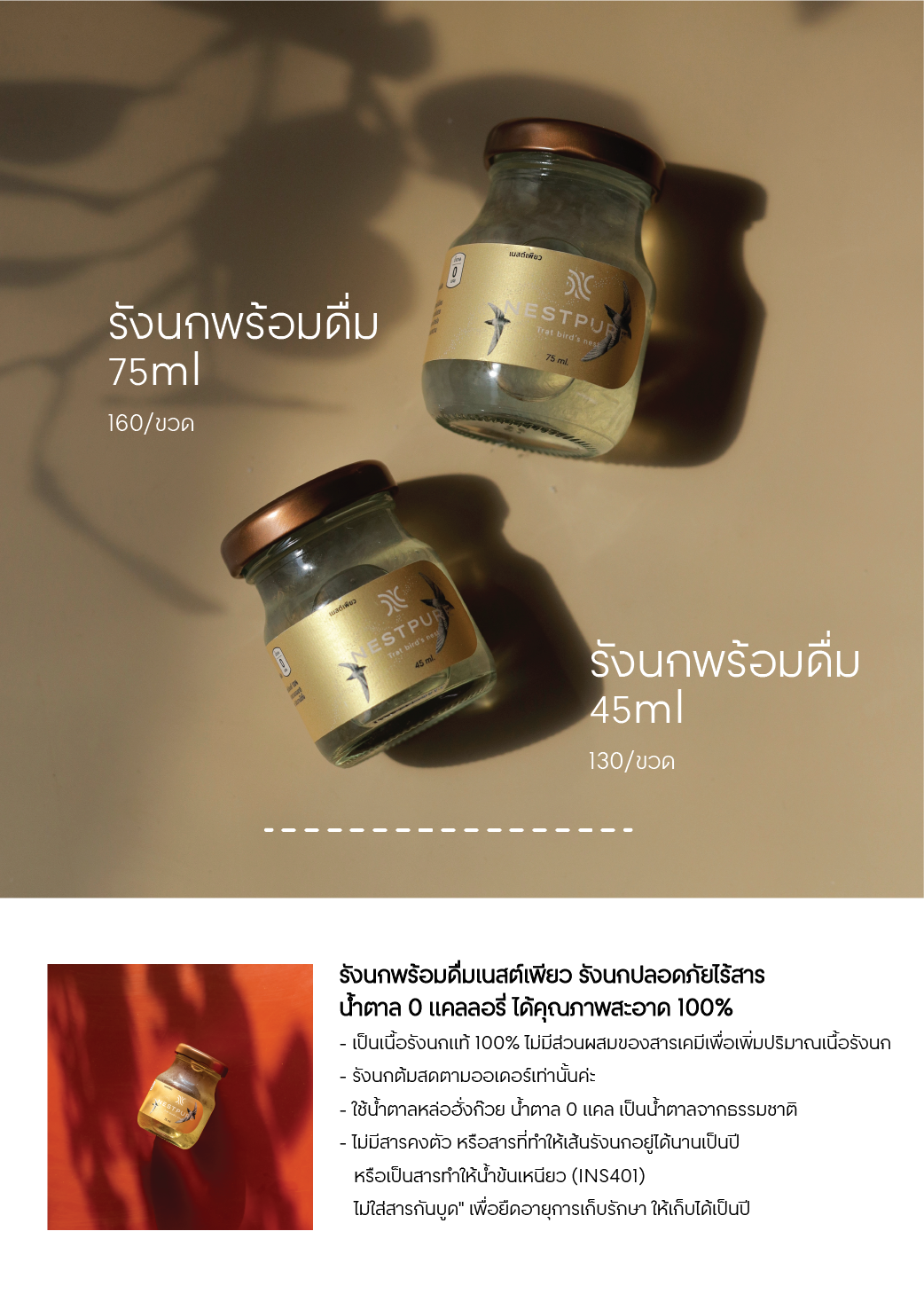 ผลิตจากรังนกแท้เกรดพรีเมียม 100%